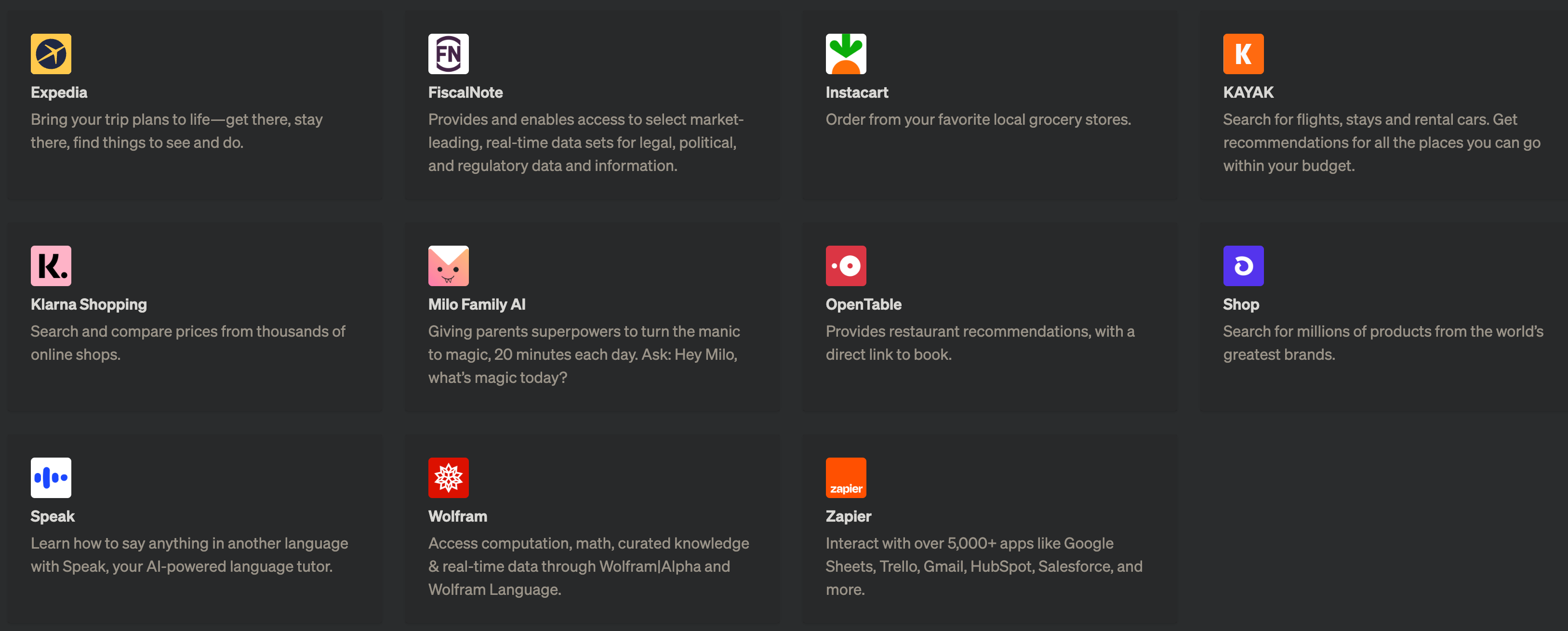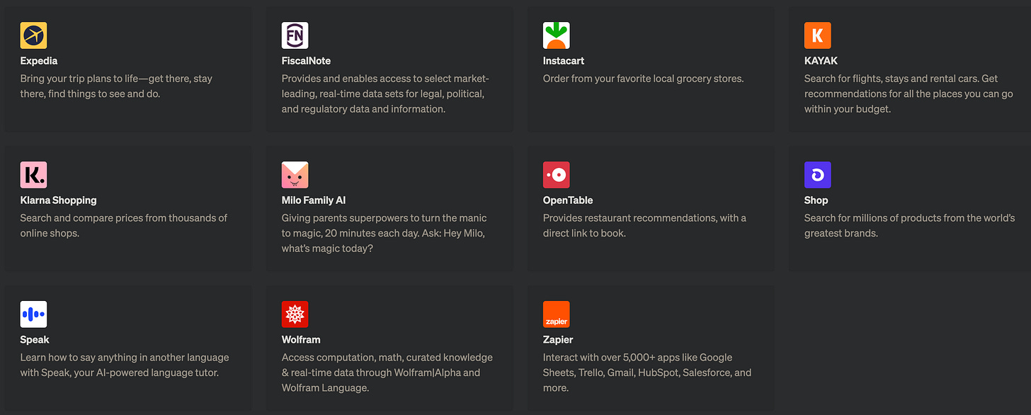 Developers can build applications on top of ChatGPT, giving them superpowers in any domain. Here are some of the plugins available at launch: