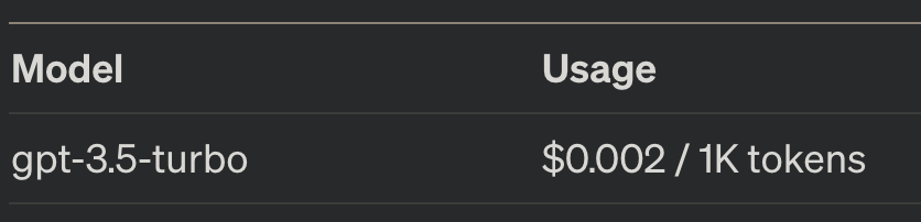 Below is the pricing for GPT-3.5 Turbo and GPT-4.